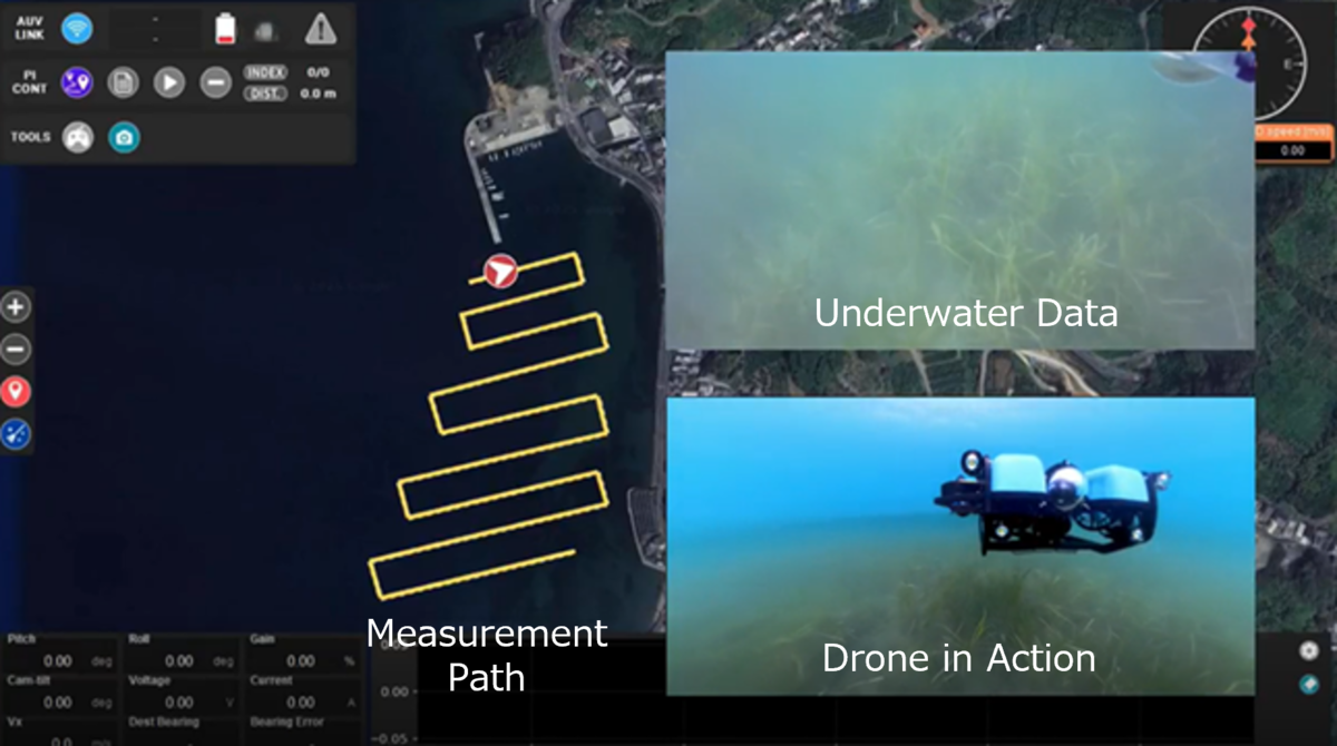 To address this challenge, we have developed two core technologies: "Underwater Drone Automatic Navigation Control Technology," which enables underwater data measurement with a positional accuracy of within plus or minus 50 cm even in ocean currents, and "Seaweed and Seagrass Beds [*4] Quantification Technology," which recognizes the species and coverage [*5] of seaweed and seagrass beds with high accuracy of over 85%. By utilizing these technologies, we have built an end-to-end system [*6] (hereinafter, this system) that supports the acquisition of blue carbon credit certification by measuring and quantifying 100 times faster (approximately 30 minutes per hectare).